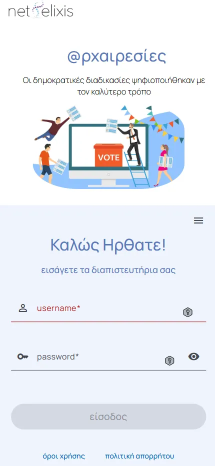 Διενεργήστε αρχαιρεσίες και ψηφοφορίες εύκολα, γρήγορα και με πλήρη διαφάνεια, χωρίς την πολυπλοκότητα των παραδοσιακών διαδικασιών.